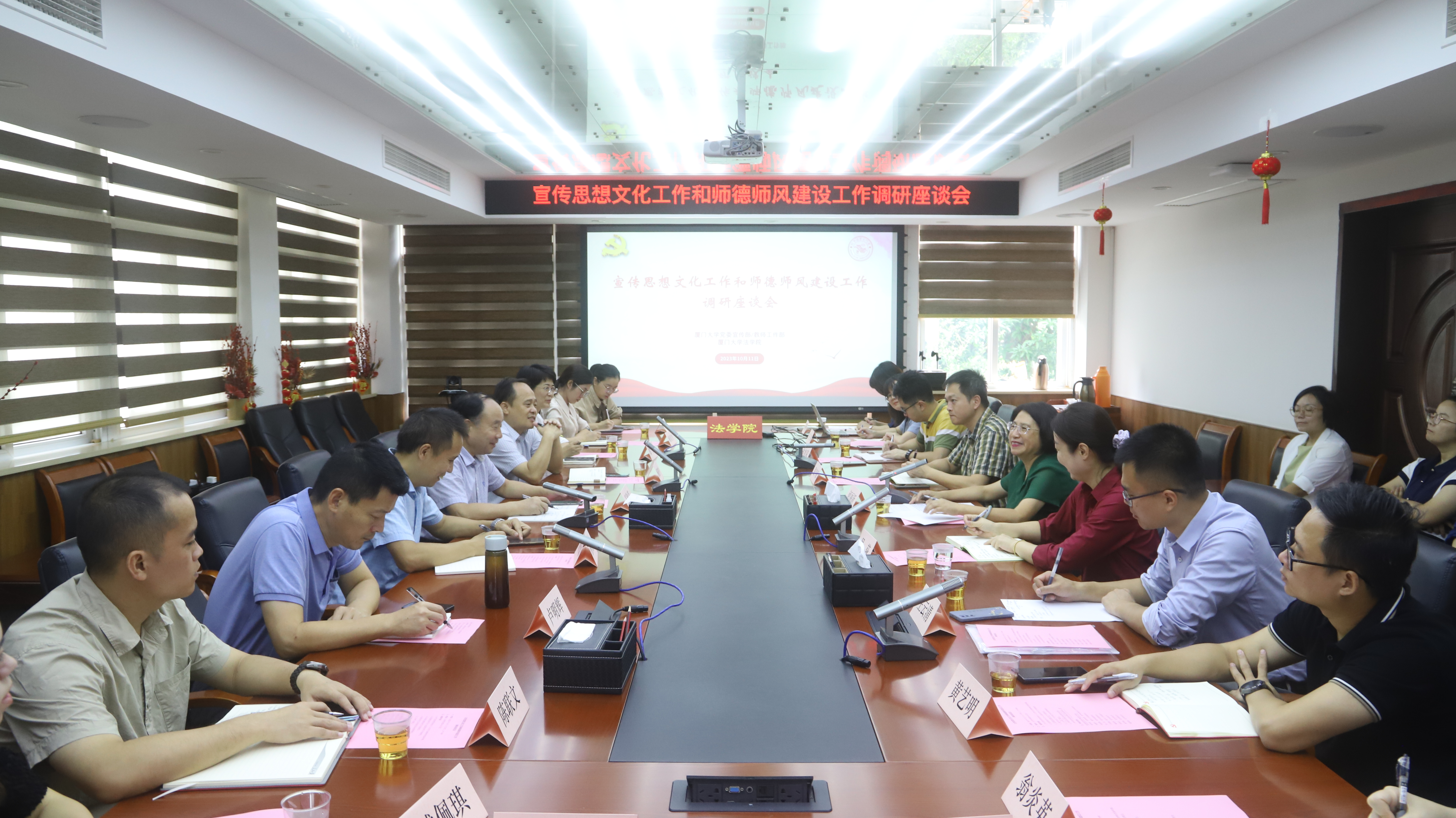 高和荣部长首先介绍了本次调研的目的。他充分肯定了法学院近年来在党的建设、思想政治工作、学科建设、科学研究等方面取得的成绩,希望通过调研,深入了解基层单位在宣传思想文化工作和师德师风建设工作方面的做法与经验,更好地推进学校宣传思想文化工作和师德师风建设工作。