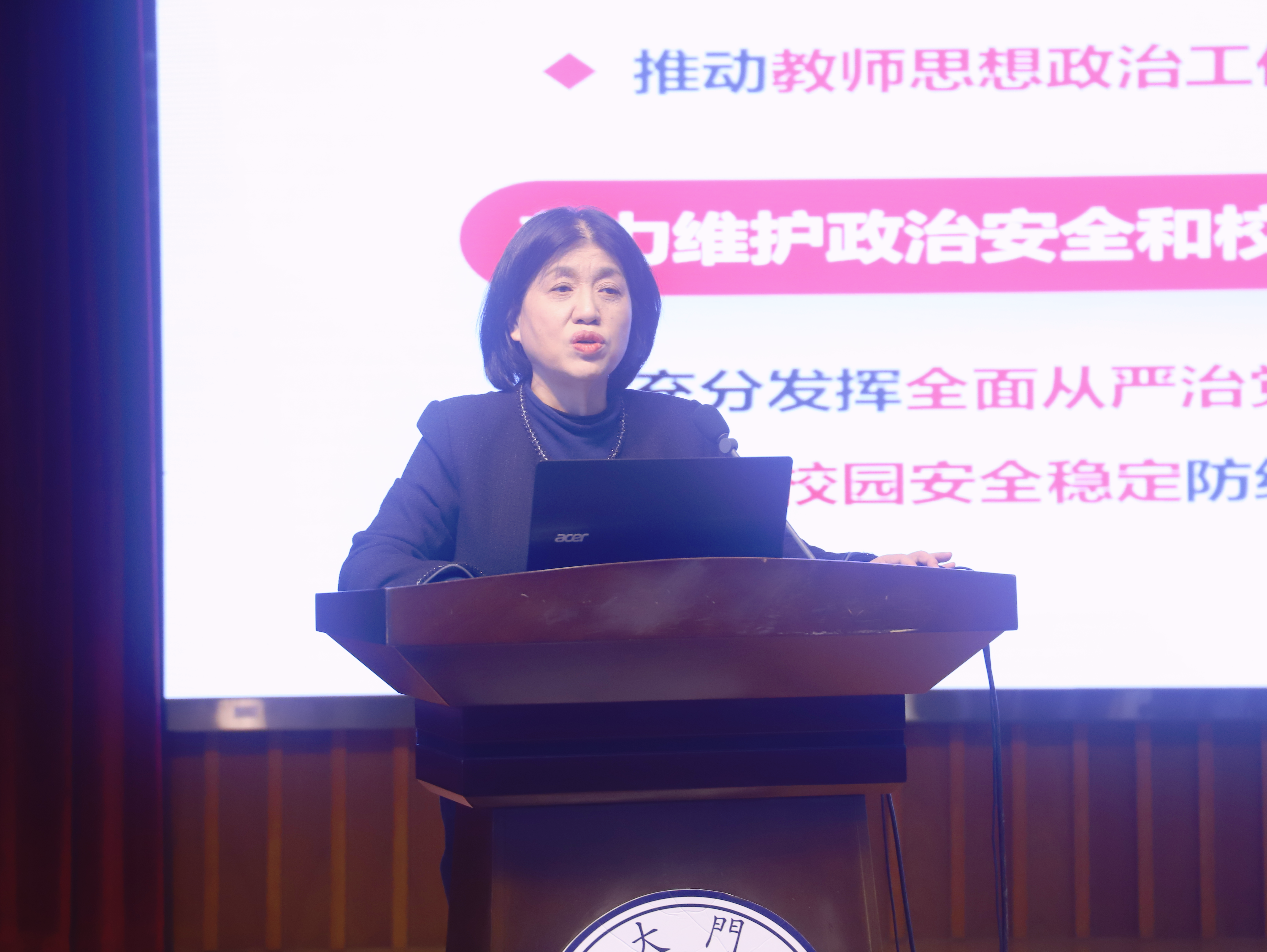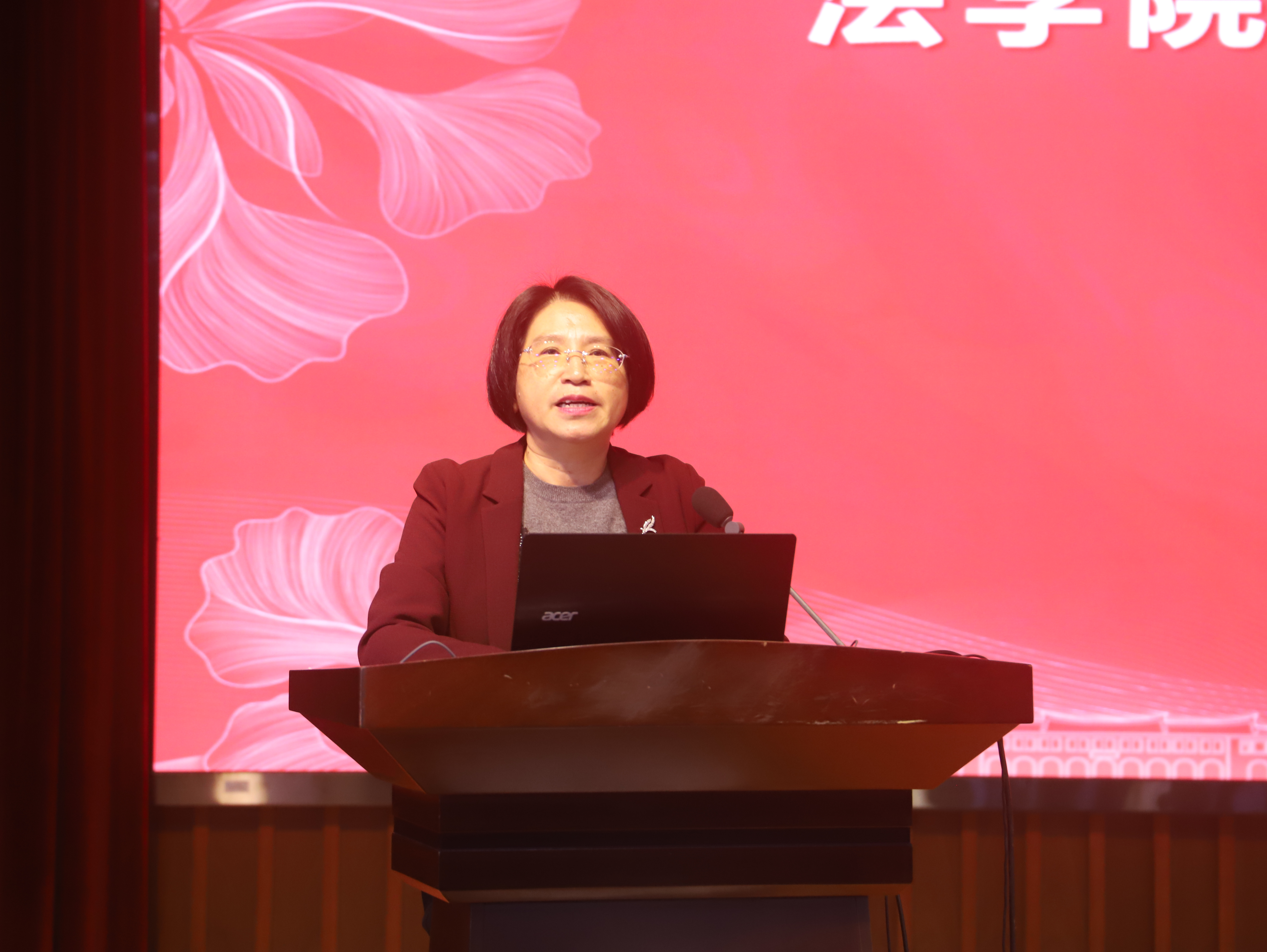 宋方青院长首先就2023年法学院工作总结以及2024年法学院工作布置作大会报告。就2023年度法学院党建工作进行总结时,她指出,学院党委在过去的一年中积极开展各项工作,重点包括六个方面:夯实组织建设,发挥基层堡垒作用;加强理论武装,学习贯彻二十大和学校第十二次党代会精神;抓实作风建设,推进全面从严治党;传播核心价值,彰显师生精神风貌;打造教工之家,齐心协力携手同行;常问候送温暖,关心离退休教职工。随后,宋方青院长从人才培养、队伍建设、科学研究、外事合作、服务保障等方面对上一年度法学院行政工作进行总结汇报。最后,宋方青院长传达了校党委书记张荣、校长张宗益在学校2024年工作布置会上的重要讲话精神及新学期各项工作要点,重点就新学期教学改革层面的工作要点进行部署。