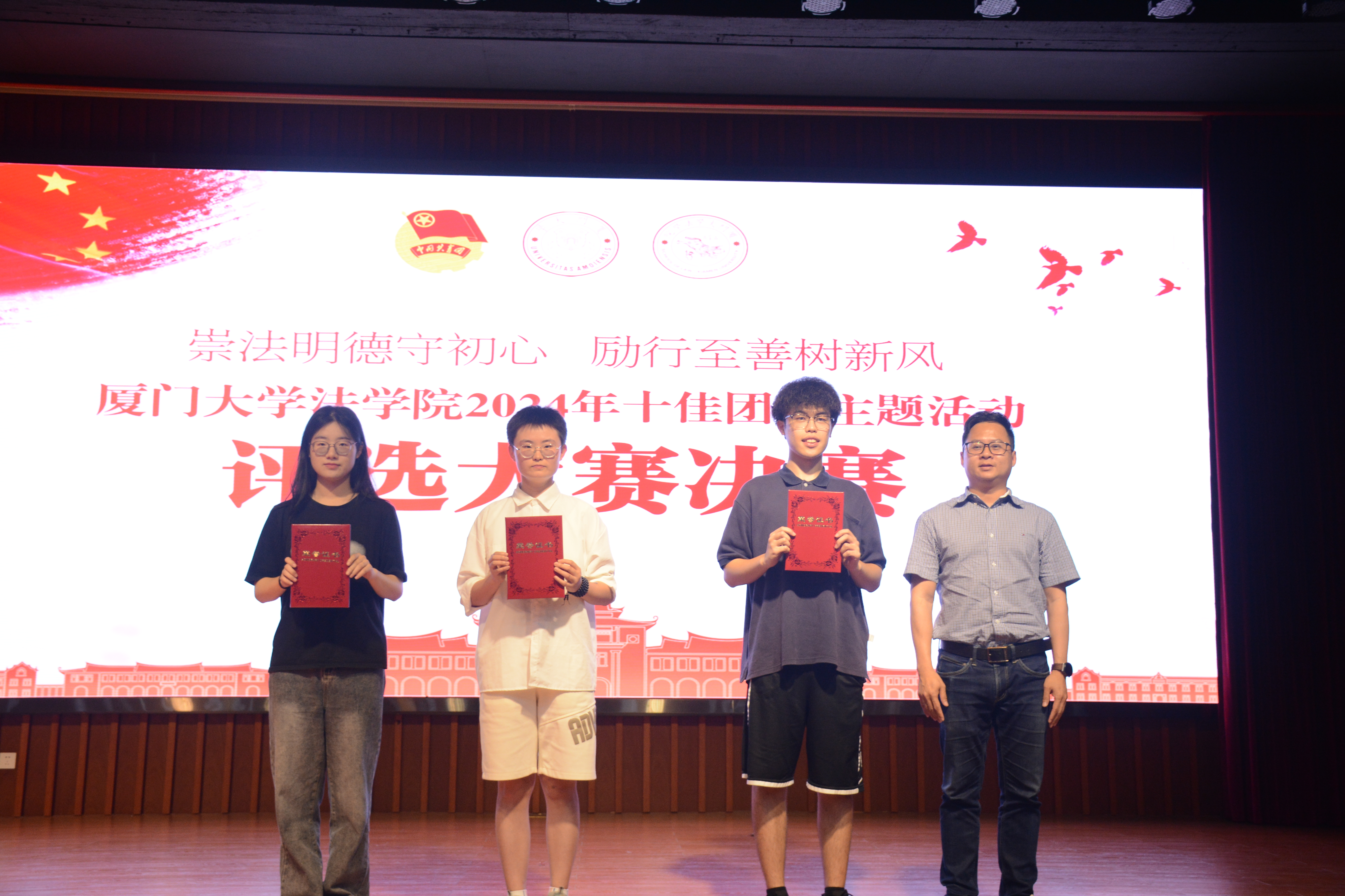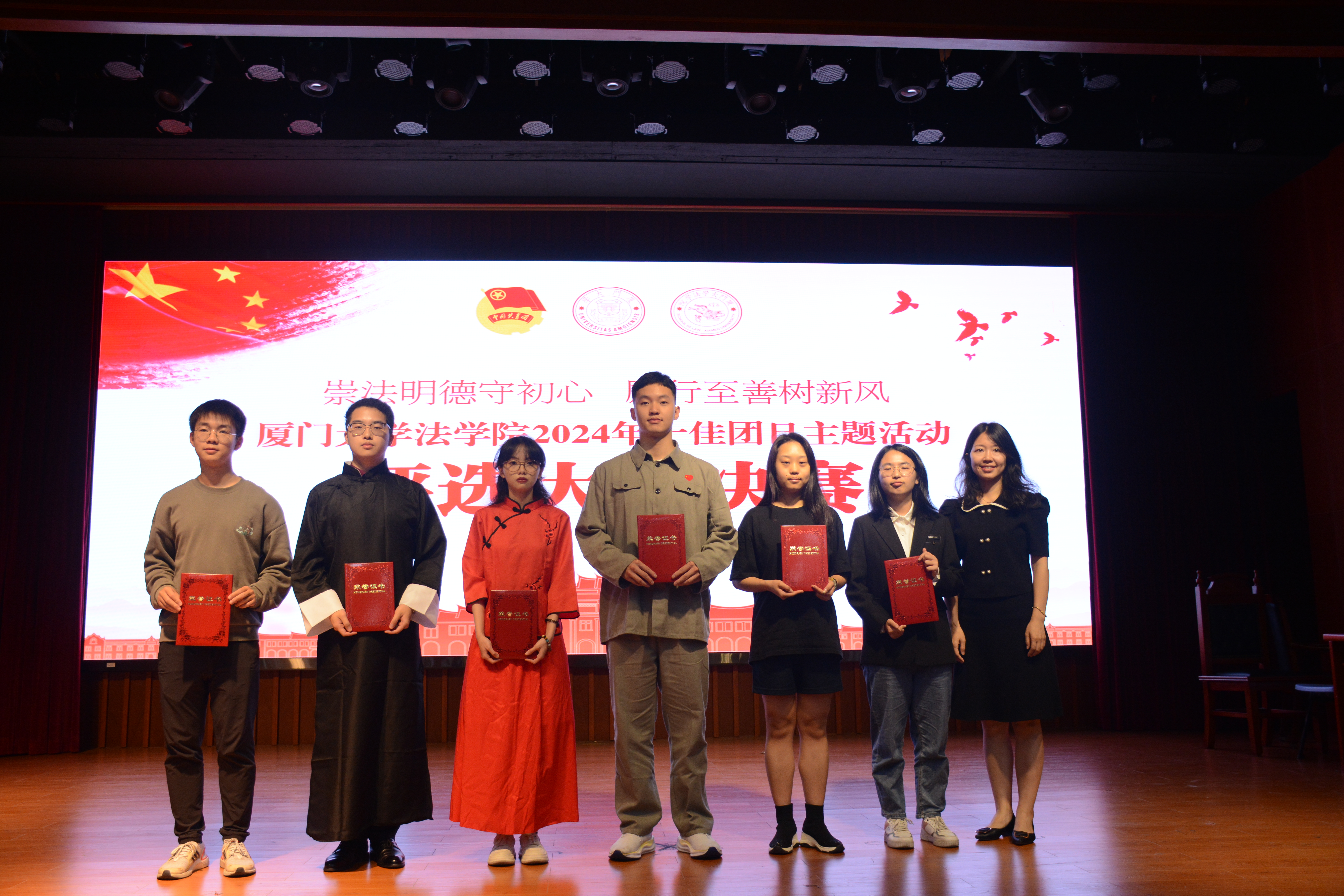 追寻红色法治初心 赓续红色法治血脉。4月18日晚,厦门大学法学院在模拟法庭举办“崇法明德守初心,励行至善树新风”2024年十佳主题团日活动评选大赛决赛。本次活动中各支部围绕习近平法治思想、革命老区红色法治及涉外法治建设等主题,通过红色舞台剧的方式,充分展现中国共产党人在中国法治现代化建设中对法治理念和公平正义的坚持与追求。