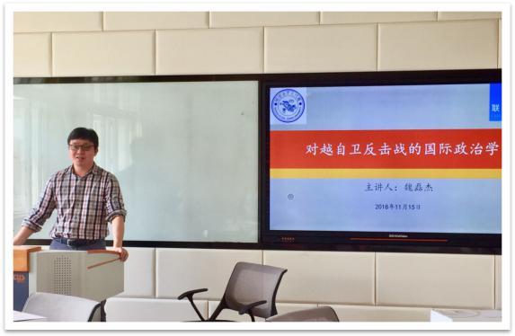 2018年11月15日,法学院青年教职工协会主办的信实学术午餐会(第十期)在法学院教学楼B521如期举行。本次午餐会邀请到法学院魏磊杰副教授做主题为“对越自卫反击战的国际政治学”的主题报告。本次午餐会由郑永宽副教授主持。