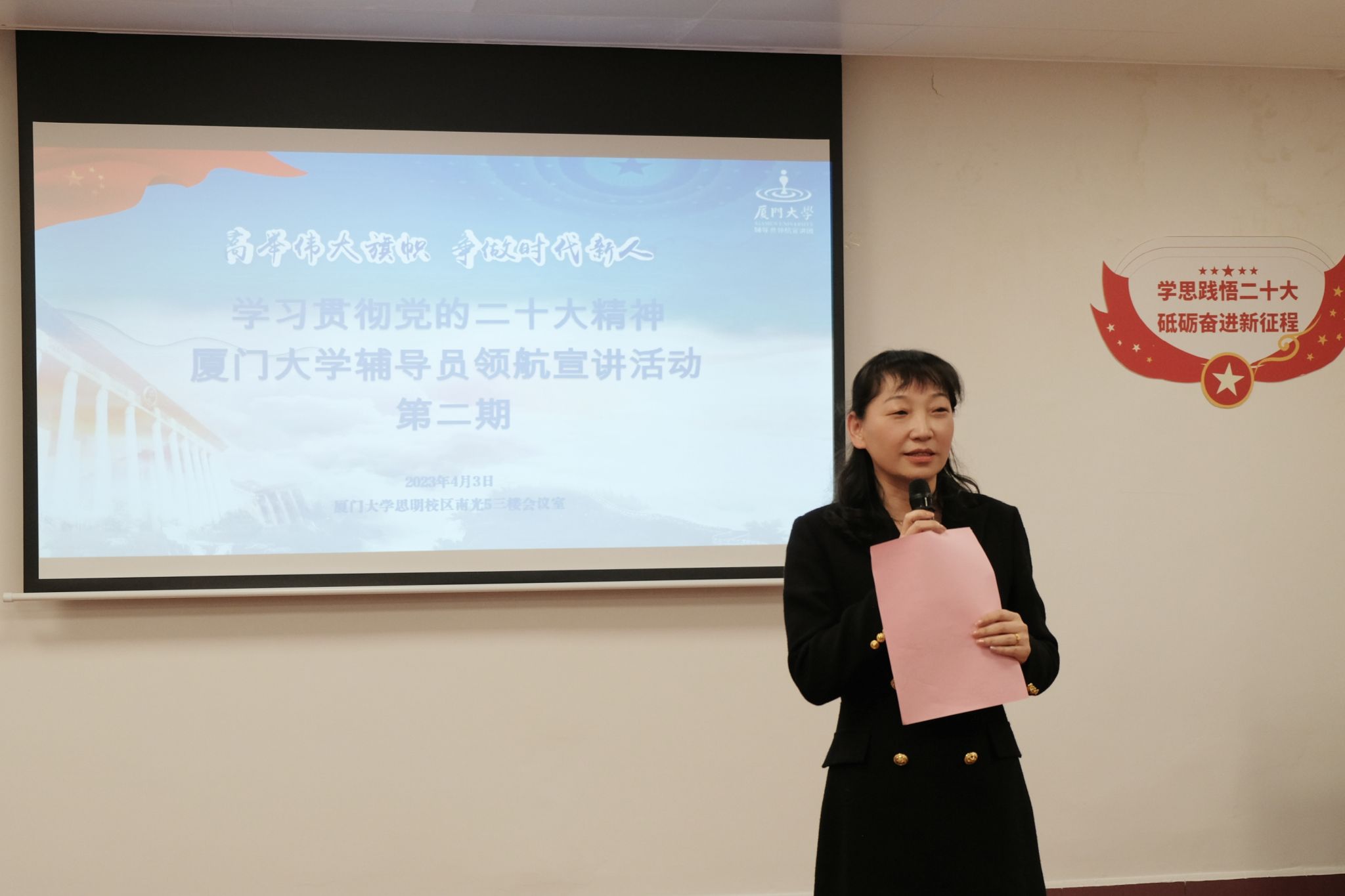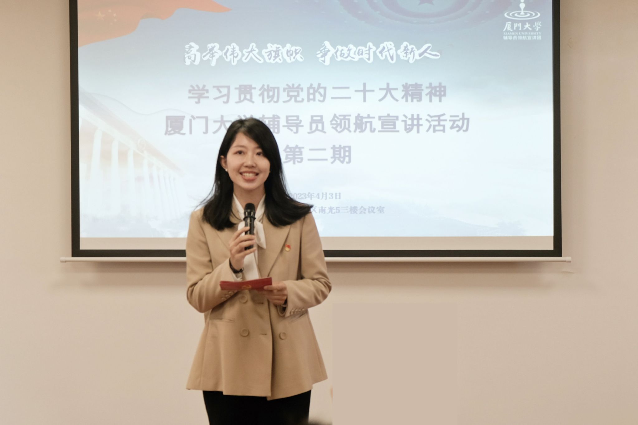 据悉,厦门大学辅导员领航宣讲活动旨在充分发挥辅导员思想引领和价值引领作用,以党的二十大报告关键词为切入点,丰富宣讲形式和内容,深入学生课堂、社区等开展宣讲,把学习贯彻习近平新时代中国特色社会主义思想不断引向深入。接下来,学校还将围绕“国家安全”“文化传承”“绿色发展”“科研强国”“民族团结”等主题举办系列宣讲活动。