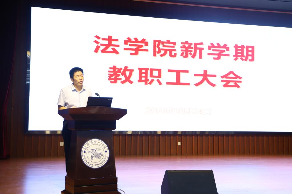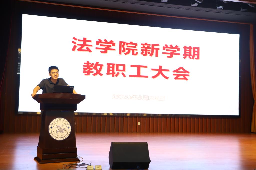 9月24日下午,法学院新学期教职工大会在模拟法庭成功召开。法学院党委书记许和山、院长宋方青教授、学院其他党政领导及全体教职工参加了本次会议。