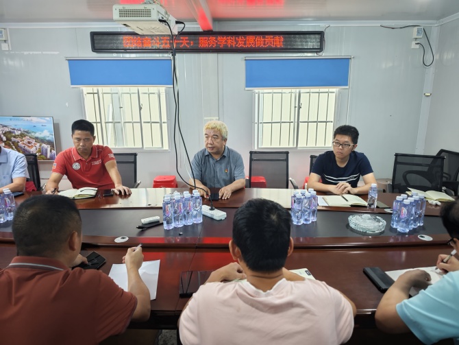 首先,基建处汤宝忠副处长作动员讲话,指出本项目作为重点建设项目,事关学校学科发展大局,各级各方面领导高度重视。接下来的50天是施工关键冲刺阶段,任务艰巨,参建各方要统一思想,提高站位,有责任有担当;要团结一致,认真谋划,精心组织,加大投入,在确保质量、安全的前提下,全力推进施工进度,确保按时完成施工计划。