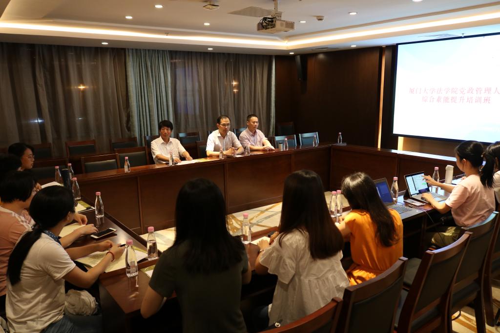 为培养造就忠诚干净担当的高素质专业化干部队伍,推动以习近平新时代中国特色社会主义思想为中心内容的理论教育更加深入、党性教育更加扎实、专业化能力培训更加精准、知识培训更加有效。进一步提升法学院党政管理人员综合素能,改进工作作风,提高服务效率,加强学院党政管理人员队伍建设。9月7日至8日,法学院党政管理人员综合素能提升培训班在翔安校区举办,法学院全体党政管理人员参加培训。开班仪式由法学院党委副书记、党校副校长郭锦星主持。