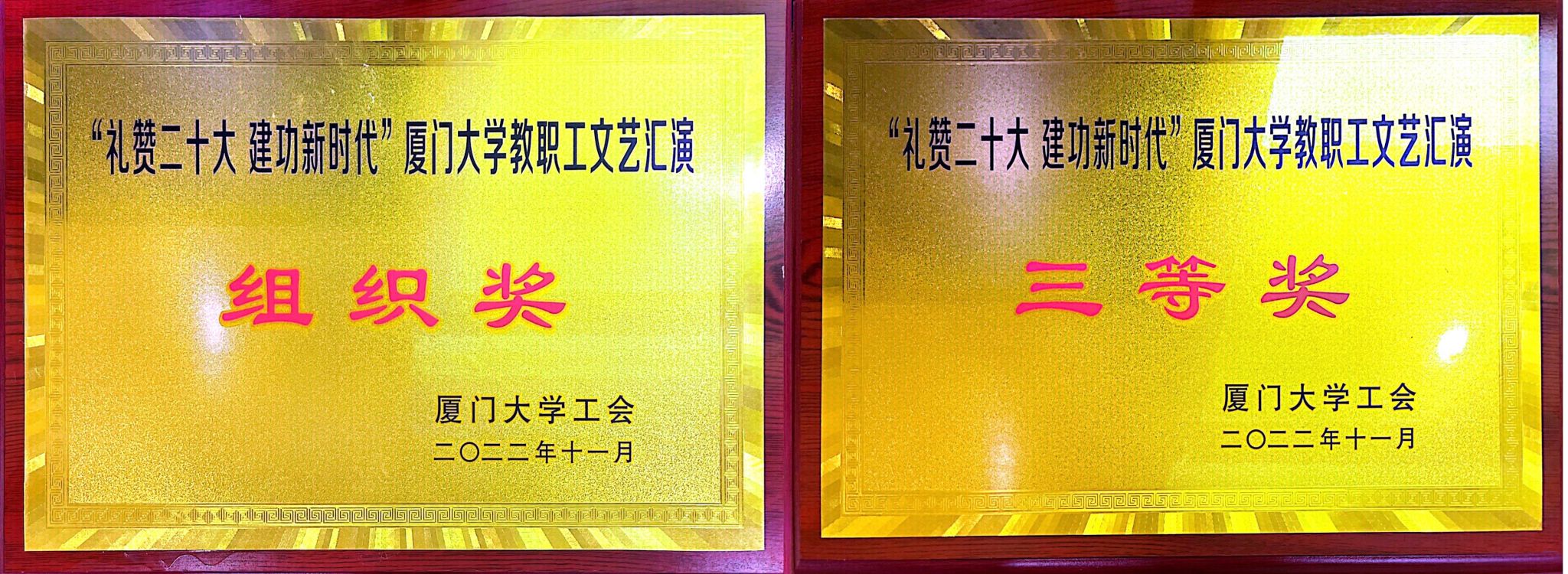 11月13日,“礼赞二十大,建功新时代”厦门大学教职工文艺汇演在建南大会堂落下帷幕,法学院教职工以昂扬的精神风貌和细腻优美的旋律倾情演绎《灯火里的中国》,以优异的成绩获得三等奖,同时学院获最佳组织奖。
