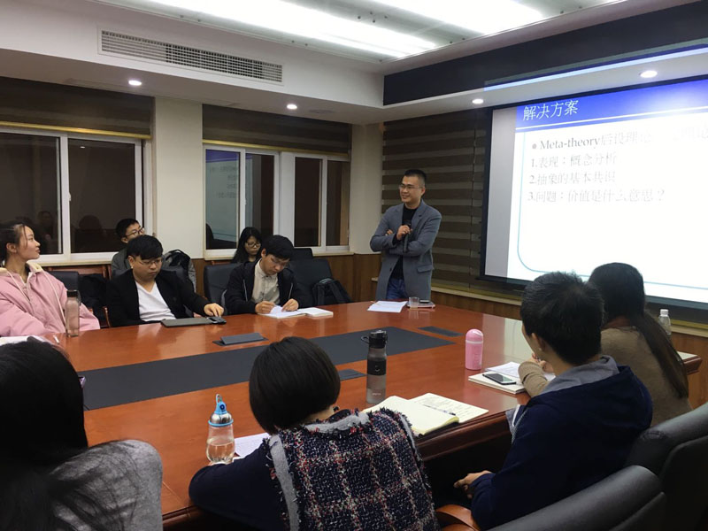陈景辉教授讲授的内容生动有趣,以分析法学的视野从多方面、各层次深入浅出了地阐释了“法学是什么”的问题,引发了在座听众的深入思考与积极互动。“法学是什么”是法学研究中一个颇为经典的问题,关于法学与其他学科的关系、法理学与部门法学的关系、法理学本身的问题也将在这一宏大的问题中得到讨论。陈景辉教授指出,在剖析“法学是什么”这一问题时,有四种理论可供借鉴,分别为:教义理论、非理想的规范理论、理想的规范理论与后设理论(Meta-theory)。法学的研究工作一般以此四种为理论工具依次深入进行,后两者通常为法理学的研究工作。