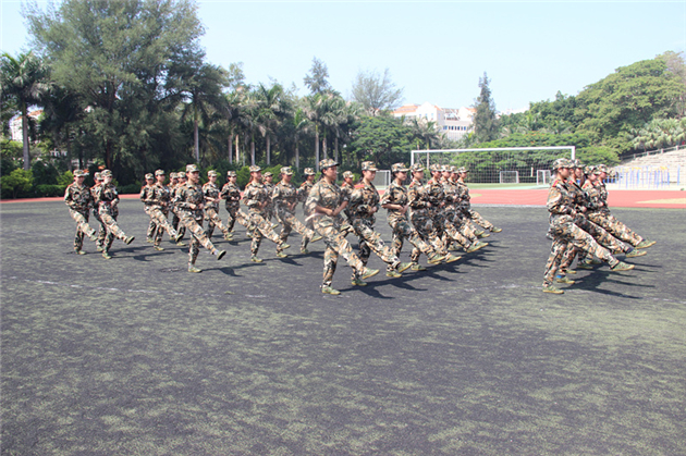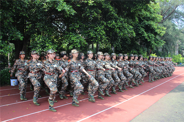 分列式虽是军训中必备的常规项目,却也是最辛苦的训练项目之一。分列式训练需要对相同的几个简单动作进行反复长时间定型、调整。除了对每一动作有着高标准的要求外,分列式还要求方阵中的每一位同学与身旁其他人标齐高度,并且保持节奏、距离一致,因此分列式方阵对于队友间的协调与默契程度要求极高。