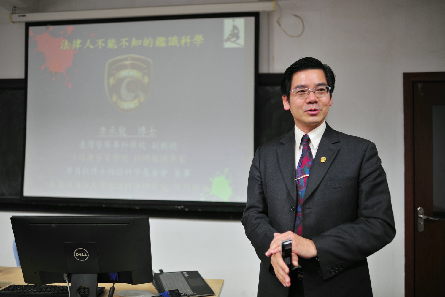 12月5日晚上七点在厦门大学法学院B420案例教室,台湾警察专科学校副教授、知名刑事鉴识专家李承龙博士为我院师生带来一场题为“法律人不能不知的鉴识科学”的专题讲座。此次讲座由厦门大学法学院教授、诉讼法教研室主任刘学敏老师主持,厦门大学法学院周东平教授和王天民、陆而启副教授,以及大成律师事务所许兴文律师参与会谈。法学院的同学们对本次讲座十分期待,教室座无虚席,气氛活跃。
