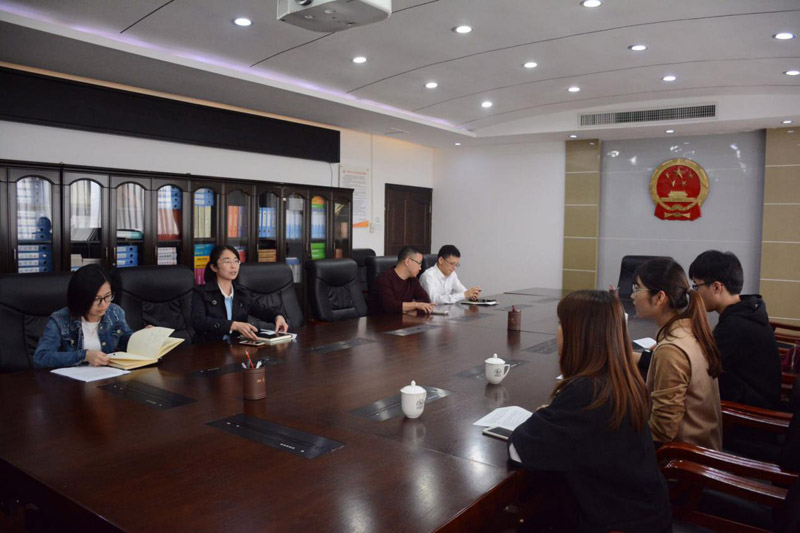 当天下午,在研究室法官助理苏秋萍的主持下,晋江法院研究室主任王清镇、金井人民法庭庭长谢远欣、民一庭法官助理杨燕萍、研究室法官助理苏秋萍等热情地接待了实践队同学。队员们提出了许多有关家事审判改革的问题,谢远欣庭长逐一回答并发表了自己的看法。王清镇主任则直面指出了晋江法院在家事审判中面临的困难与挑战。