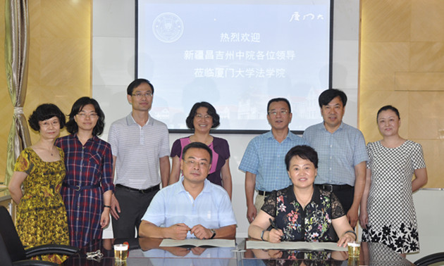 6月3日,厦门大学法学院和新疆昌吉回族自治州中级人民法院“委托培训协议”签约仪式在我院419会议室如期举行。出席本次会议的有我院党委书记李智勇、副院长何丽新、党委副书记周蕾、党委副书记郭锦星,昌吉州中院党委书记王彩霞、副院长赵鸿武、政治部副主任马文俊、档案科科长朱兰英,福建省高院、厦门中院部分法官也出席了签约仪式。