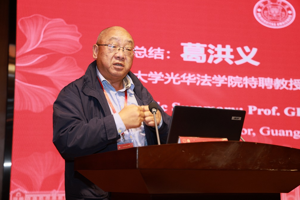 研讨会闭幕式由厦门大学法学院副院长郭春镇教授主持。浙江大学光华法学院特聘教授葛洪义教授对研讨会进行了学术总结发言。葛教授充分肯定了本次论坛议题的设置形式,他简要阐述了各位学者、法官的发言主题,继而指出法律问题需要通过和平的方式来解决,同时还需要关注制度建设的问题,还有待于各位学者继续去深入研究。最后,本次论坛在郭春镇教授生动的总结中圆满落幕。