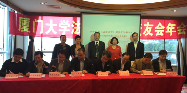 2015年11月1日上午,厦门大学法学院上海校友会2015年度年会暨厦门大学法学院全国校友会联谊会在上海黄浦江畔成功举行,来自全国各地的校友欢聚一堂,共同回顾了母校取得的辉煌成就,并见证了厦门大学法学院全国校友会联谊会浦江宣言的郑重签署。