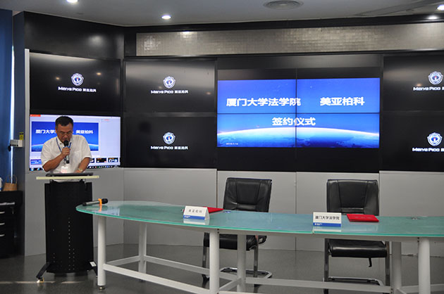 2016年7月14日下午,我院与厦门市美亚柏科信息股份有限公司在美亚柏科公司总部签订共建合作协议,共同建设“厦门大学法学教育实践基地”。出席本次签约仪式的有学院党委书记李智勇、院长宋方青、党委副书记周蕾、郭锦星、副院长林秀芹、团委书记高斌,美亚柏科股份有限公司总经理申强、副总经理赵庸、公司数字法律服务事业部总经理仲丽华,以及丁丽瑛、郭春镇等学院师生代表。