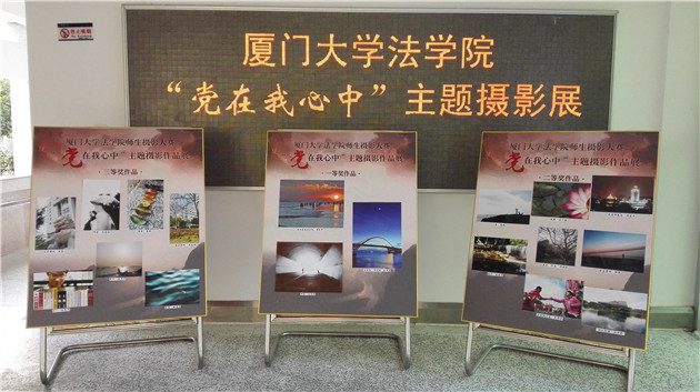 由厦门大学法学院主办的首届“党在我心中”师生摄影大赛,近日起在我院C楼大厅进行获奖作品与师生风采作品展示。