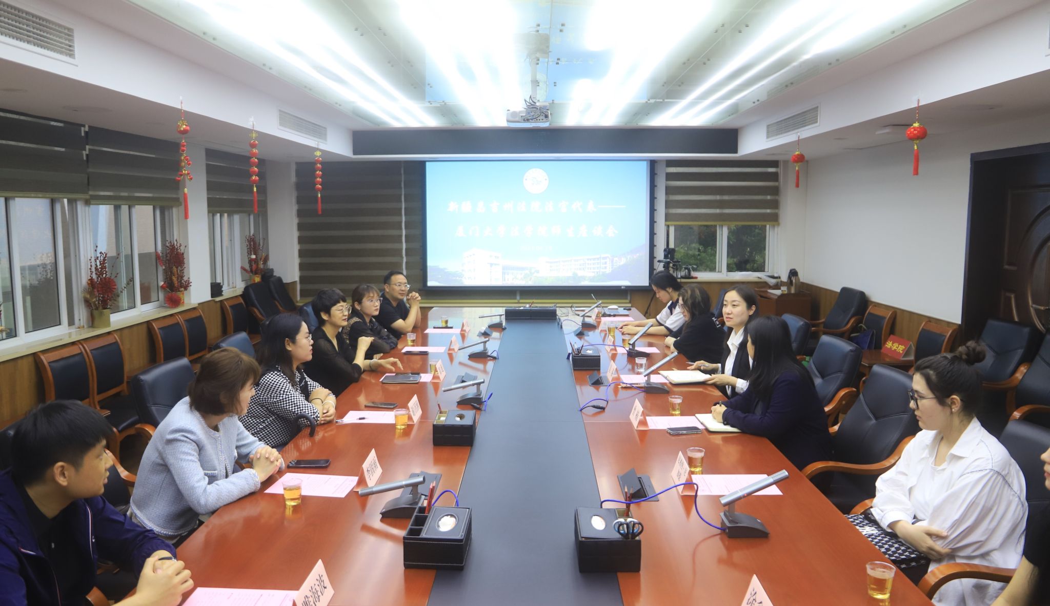 4月19日下午,新疆昌吉回族自治州法院系统6名法官代表与我院师生代表在B220会议室座谈。新疆昌吉州中级人民法院审监庭副县级审判员郑延、阜康市人民法院行政审判庭综合审判庭庭长谢召涧、木垒县人民法院立案庭法官助理马吾力牙、玛纳斯县人民法院民事审判庭审判员李固雨、奇台县人民法院执行局警官卢超、吉木萨尔县人民法院执行局副局长睢海波参加本次会议。法学院党委副书记吴荻,辅导员曾楠,新疆籍学生代表2019级本科生祖丽皮耶姆·依米提、周洁、2020级本科生尼格热·尼加提、2022级本科生马智彦、涂鑫雨参与座谈。