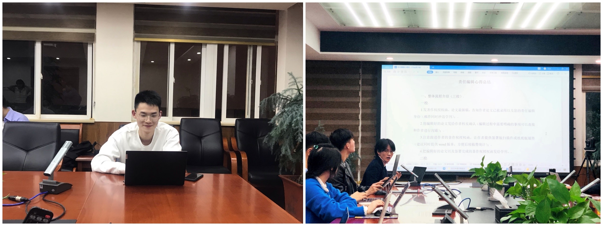 行政编辑刘业同学和资深责任编辑许少彬同学分别对《学刊》的审稿系统、收稿审稿情况和责任编辑工作规范流程、注意事项进行报告。随后与会老师和同学就如何吸引优质稿源、优化审稿流程、提升刊物影响力等问题进行了热烈讨论,最后《学刊》副主编曾华群教授做了总结发言。