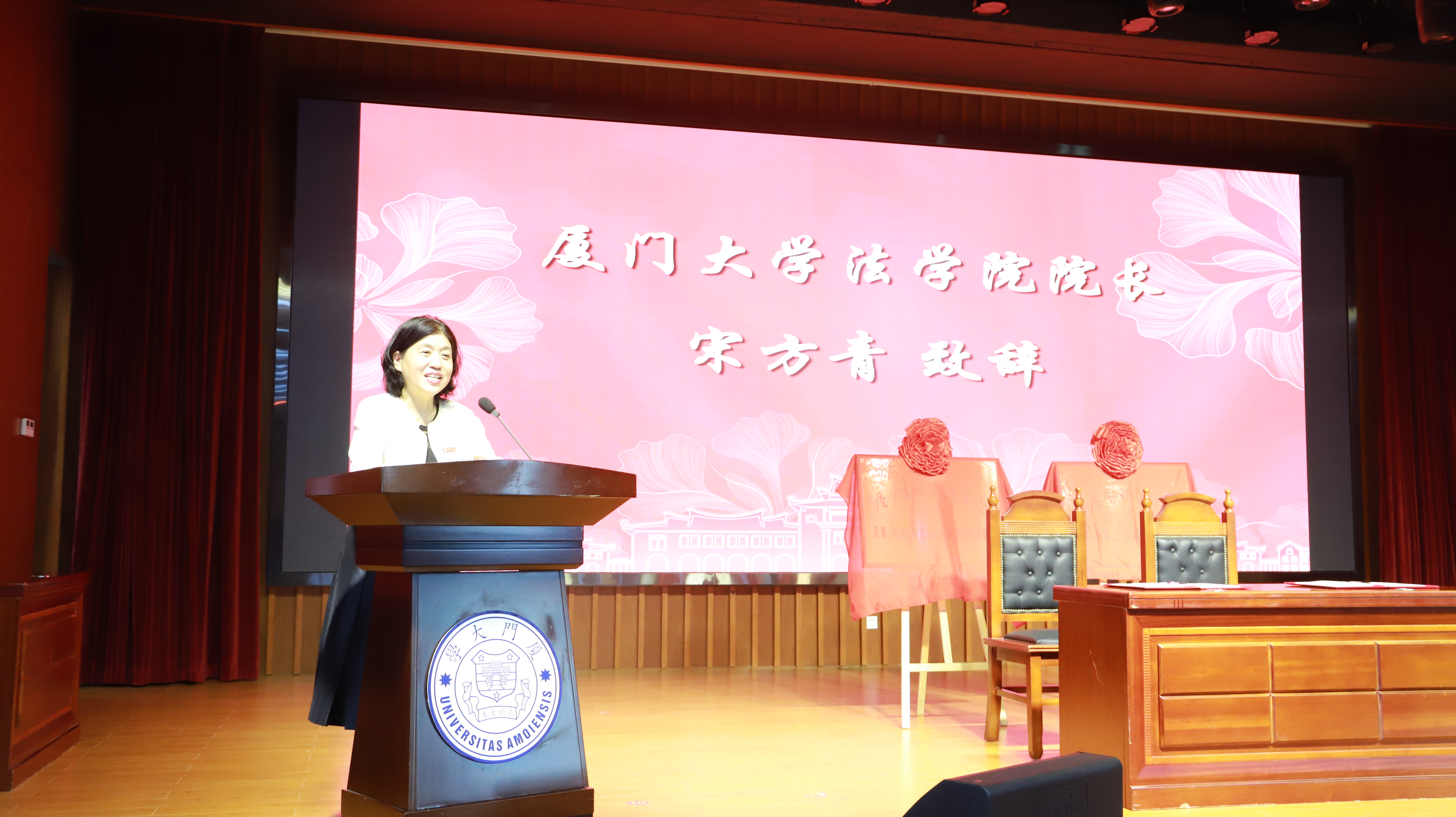 仪式开始后,宋方青院长、邱伟杰副校长、洪清副检察长先后致辞。宋方青院长在致辞中表达了对福建省各级检察机关支持学院发展的感谢,高度赞扬了以省检为代表的各级检察机关建设平安福建、法治福建的显著成果,介绍了法学院学科建设情况与“知识报国”的发展理念,展望了基地合作的良好前景。邱伟杰副校长表示,厦门大学践行习近平总书记致厦门大学百年校庆贺信精神,以“全面提升服务区域发展和国家战略能力”为目标,为福建省发展建设贡献高校力量。借由厦门大学百年校庆良好契机,法学院扩建工程顺利启动;日前海峡两岸检察制度研讨会成功举办;本次基地落成更是检校合作的优秀成果。洪清副检察长表示厦门大学百年校庆盛大举行,值此校庆年之际与厦门大学法学院开展合作具有重要意义,期待未来双方通过合作,共同推动福建省检察工作发展。