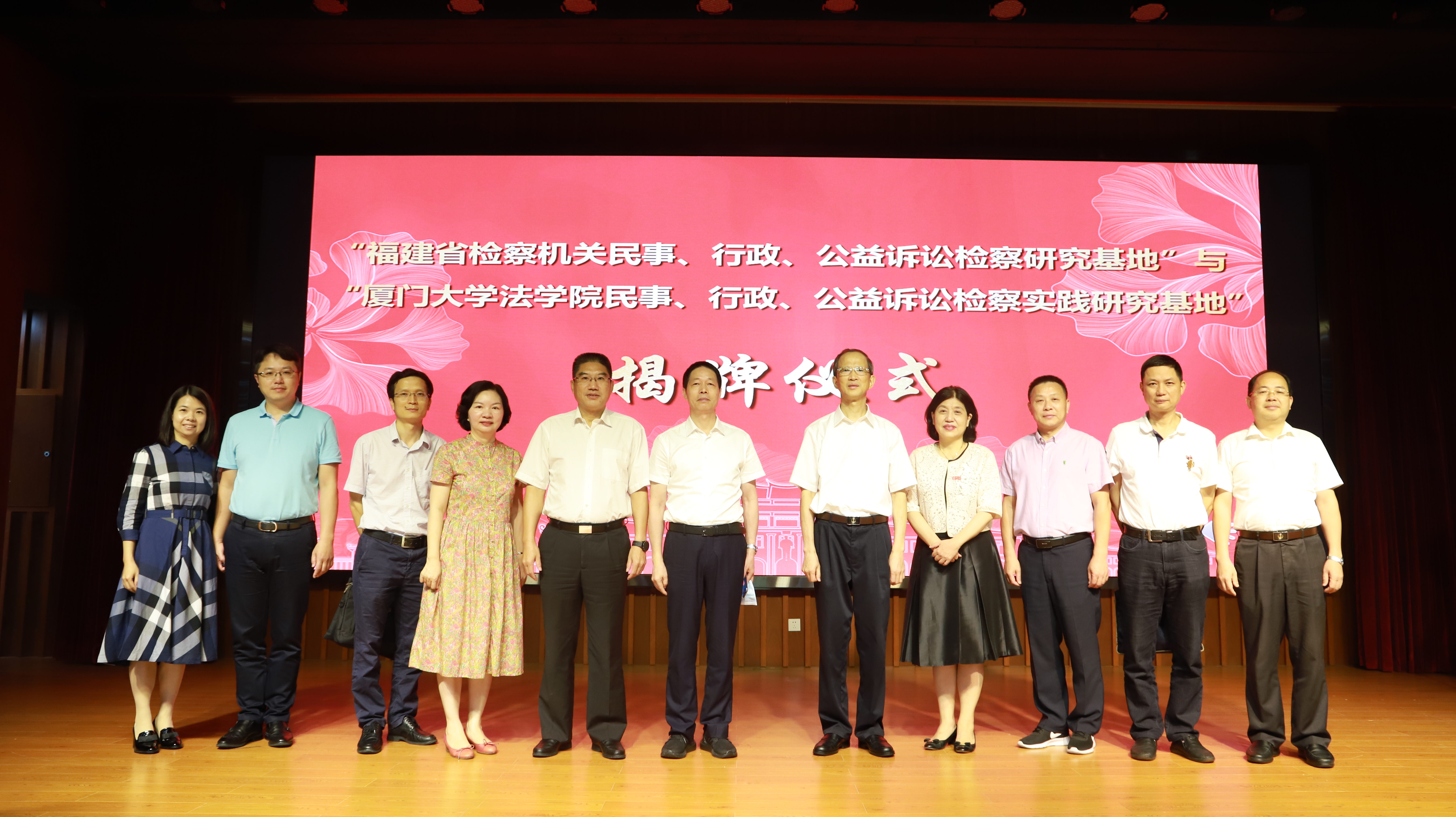 揭牌仪式举行,洪清副检察长与邱伟杰副校长分别为“福建省检察机关民事、行政、公益诉讼检察研究基地”和“厦门大学法学院民事、行政、公益诉讼检察实践研究基地”揭牌。