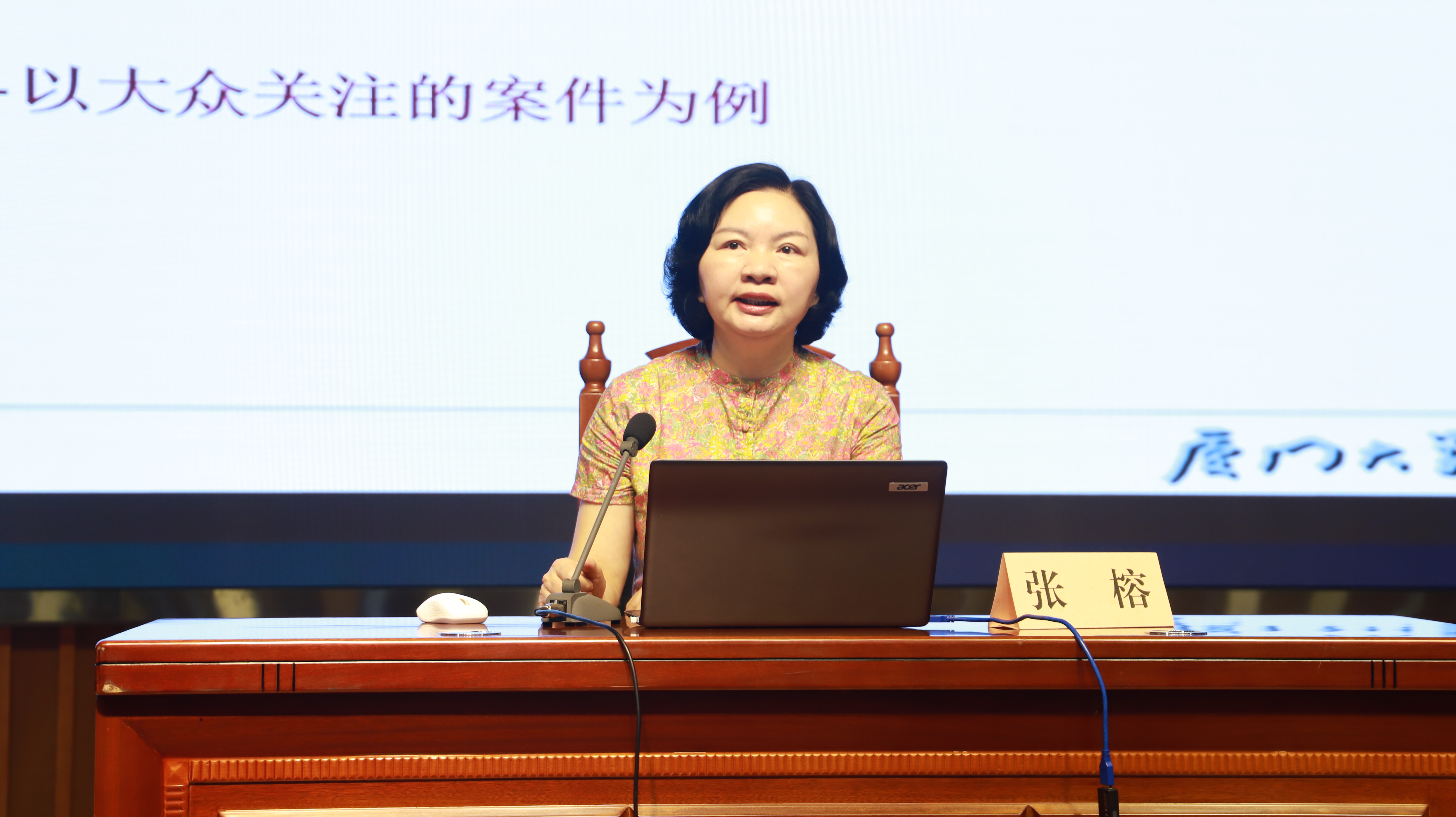 仪式结束后,厦门大学法学院张榕教授为与会嘉宾和在场师生带来了一场题为“司法过程中的事实认定——以大众关注的案件为例”的学术讲座,全省检察机关民事、行政、公益诉讼部门干警通过网络平台收看了讲座直播。