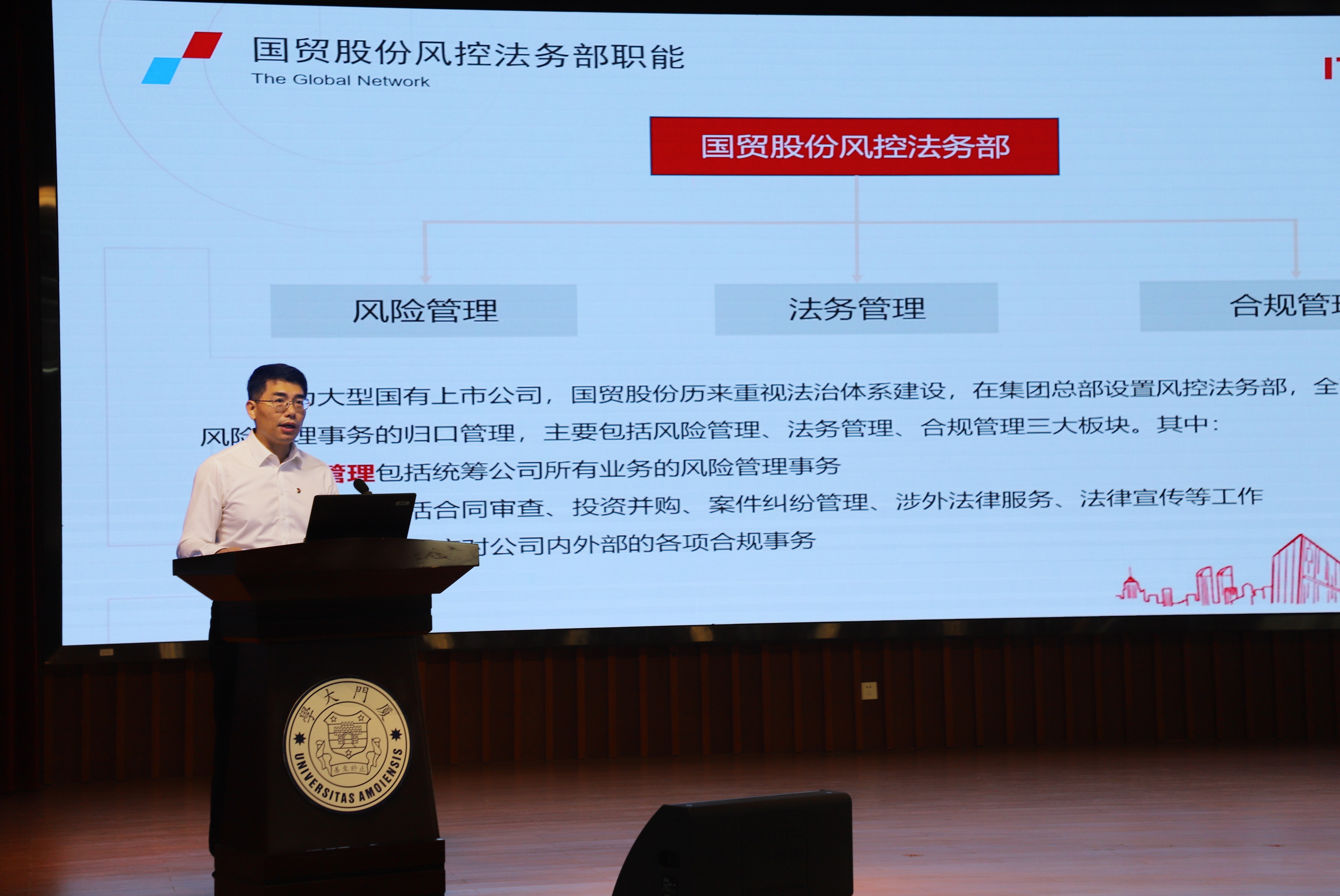 厦门国贸集团股份有限公司总法律顾问、法学院1994届院友蔡嵘结合个人从业经历,从企业对法律人才的招聘要求、企业法务人员的职业发展路径、在校生如何做好就业准备等角度出发,为求职学生提出建议。他建议法学生要善学善思,扎实知识储备;丰富实习经历,充实简历背景;突出个人优势,提升沟通表达能力,将积淀的校园经历转化为求职特长,帮助自己获得理想的工作职位。