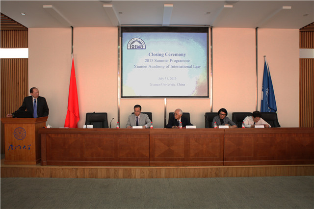 2015年7月31日16时30分,厦门国际法高等研究院2015年暑期研修班闭幕式在厦门大学科学艺术中心举行。闭幕式由厦门国际法高等研究院董事会秘书长程家瑞教授主持。