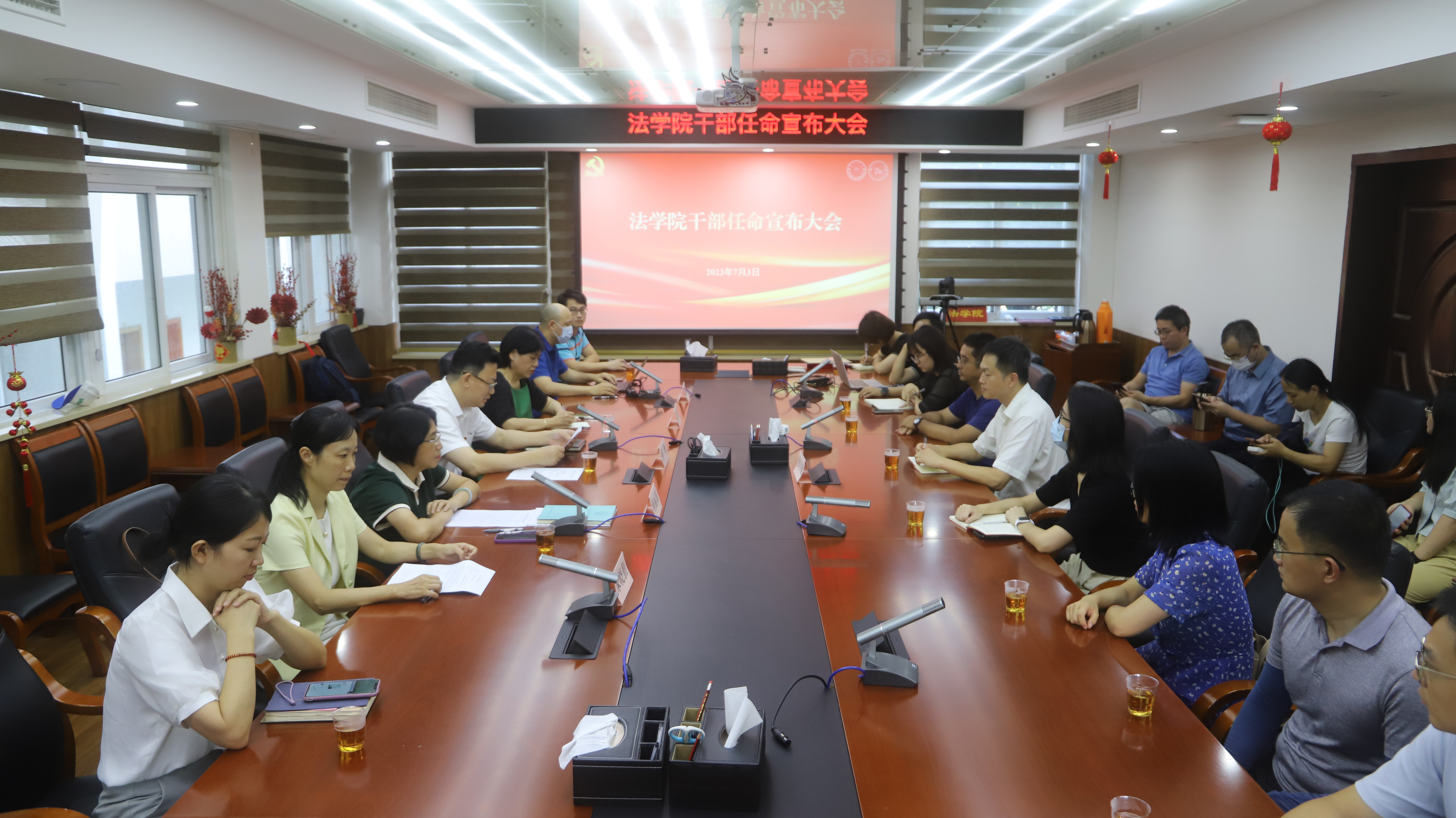 7月3日下午,校党委在B220会议室召开法学院干部任命宣布会议。校党委常委、组织部部长、统战部部长孙理出席并主持会议。法学院党政领导班子成员、教研室主任、党支部书记、科级干部等参加会议。