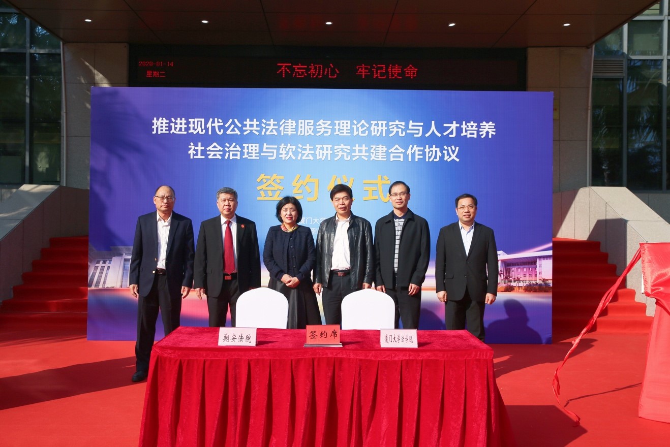 为深入推进现代公共法律服务体系建设,加强社会治理与软法研究,推动高校科研与司法实践有效对接,培养造就更多符合时代发展要求、适应法治实践需求的高质量社会主义法治人才。1月14日下午,厦门大学法学院与翔安区人民法院举行共建合作协议签约仪式,并为在翔安法院设立的“厦门大学现代公共法律服务研究实践基地”及“厦门大学社会治理与软法研究实践基地”揭牌。