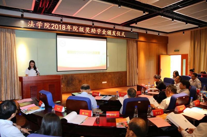 仪式开始前,法学院党委副书记郭锦星代表全体师生对到场的嘉宾表示欢迎,并介绍了此次颁发仪式的流程及2018年院级奖助学金的基本情况。