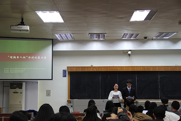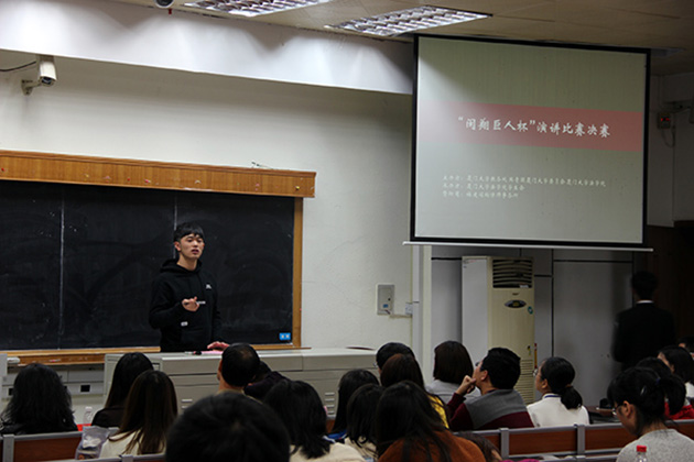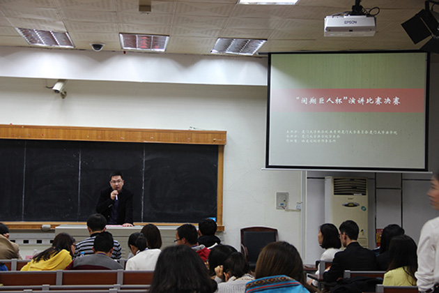12月20日晚7时,由厦门大学法学院学生会承办,福建闽翔律师事务所赞助的“闽翔巨人杯”演讲比赛决赛在法学院B138举行。担任本次演讲比赛的评委有:厦门大学法学院党委副书记郭锦星,团委书记高斌,福建闽翔律师事务所主任许清松律师,福建闽翔律师事务所吴冬红律师,法学院校友邱汐岩。出席本次活动的嘉宾有:厦门大学法学院党委副书记周蕾,团委副书记林旭荣,研究生辅导员宋磊华。经过初赛选拔,来自多个学院的8名选手脱颖而出,参加了此次决赛。