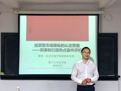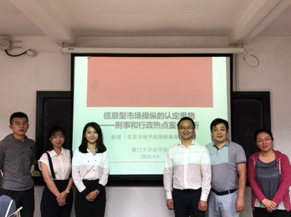 2018年5月9日傍晚7时许,由厦门大学法学院金融法研究中心与福建远大联盟律师事务所联合举办的厦门大学“远大”金融法高端论坛之“信息型市场操纵的认定思路——刑事和行政热点案例评析”座谈会在厦门大学法学院B420隆重举行。