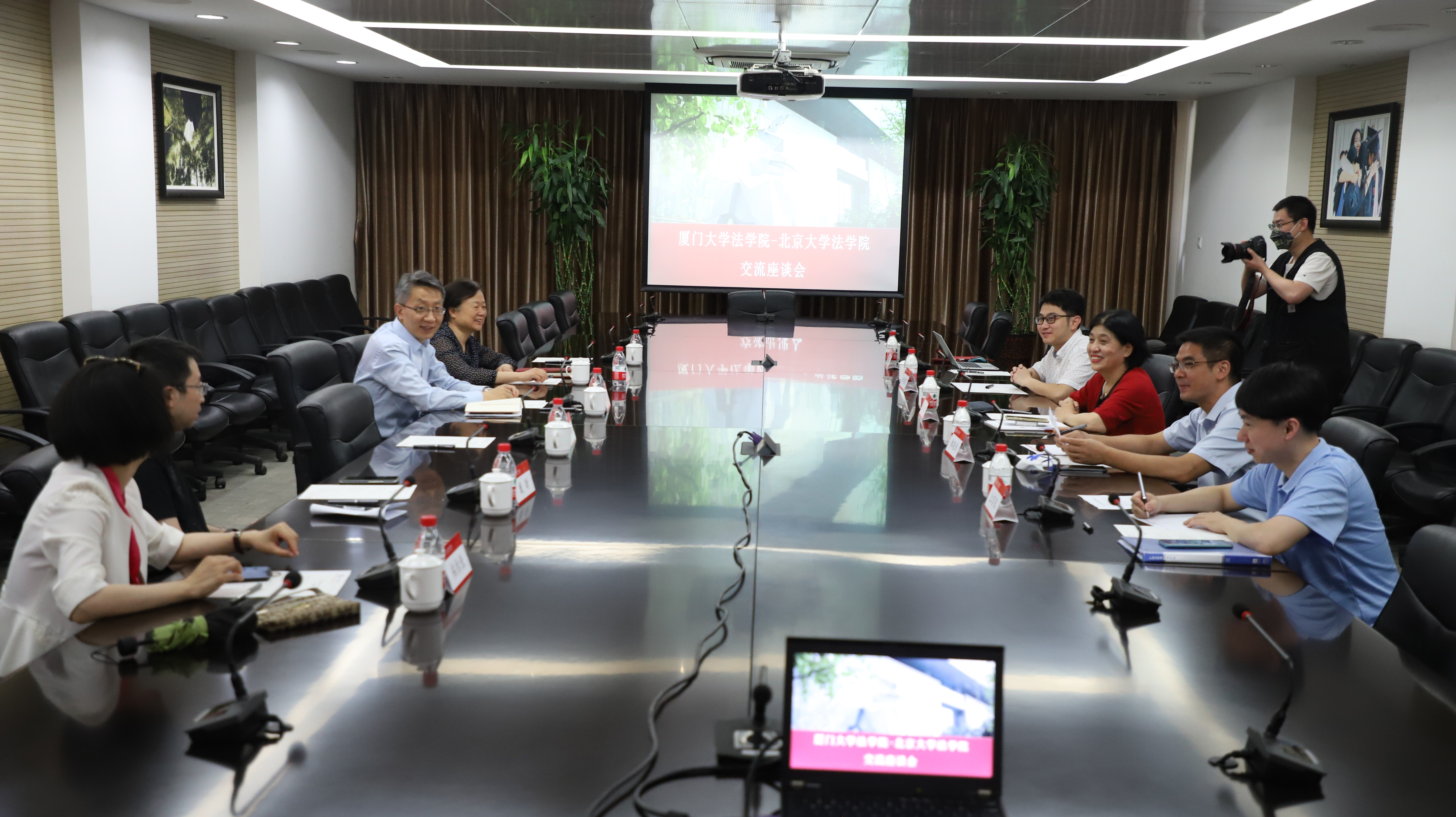 6月16日上午,宋方青一行走访清华大学法学院,与清华大学法学院党委书记邓海峰、党委副书记陈杭平、人事办主任于文晶、综合办主任官海彪、科研办秘书钱倩会面并举行座谈。宋方青院长介绍了厦门大学法学院在师资队伍、学科建设、人才培养、科研成果、咨政服务、校友工作等方面所取得的成就,并分享了学院建设的部分经验。双方从评价体系、科研奖励机制、学科平台建设、品牌学术交流活动、学生管理等方面进行沟通交流。邓海峰书记表示,期待双方加深合作,共同商讨学院高质量发展的有效举措,推动两院发展迈上新的台阶。