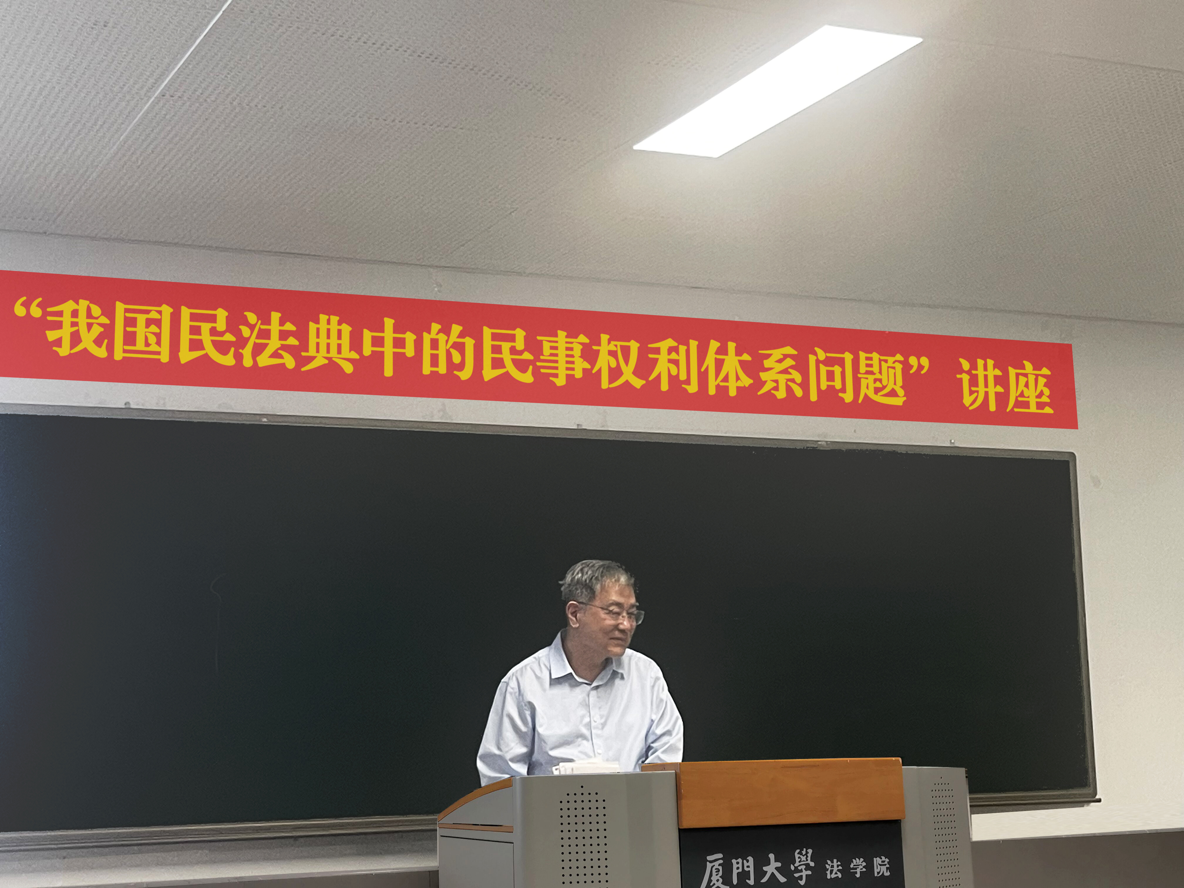 10月13日晚,中国社会科学院学部委员,中国社会科学院法学研究所一级研究员,中国社会科学院大学特聘教授,十四届全国人民代表大会常务委员会委员,全国人大宪法和法律委员会委员孙宪忠到访法学院,在A304教室为学院师生讲授《我国民法典中的民事权利体系问题》。讲座由法学院院长陈鹏教授主持,现场座无虚席,听众热情高涨。
