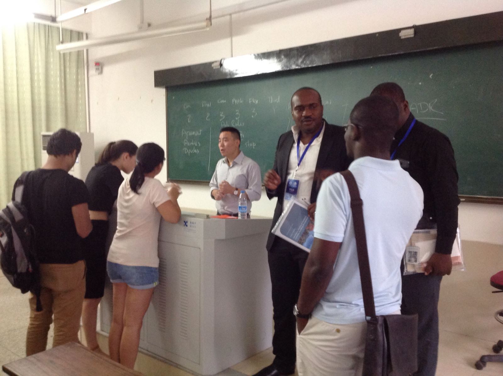 三天的行程虽然短暂,但是给两位客人留下了深刻的印象。台风天参访中院和仲裁委,天气恶劣,中院和仲裁委的热情接待和详细解答却让他们收获良多;旁听本科生和国际硕士课程,池漫郊老师、王建学老师、肖伟老师流利的英文、游刃有余的教学技巧、深厚的学术水平引来两位尼日利亚的客人连声赞叹;与国际学生交流,他们与学生介绍了尼日利亚的法律制度和司法改革状况,并分享了在中国的留学经历和对中国文化的理解……