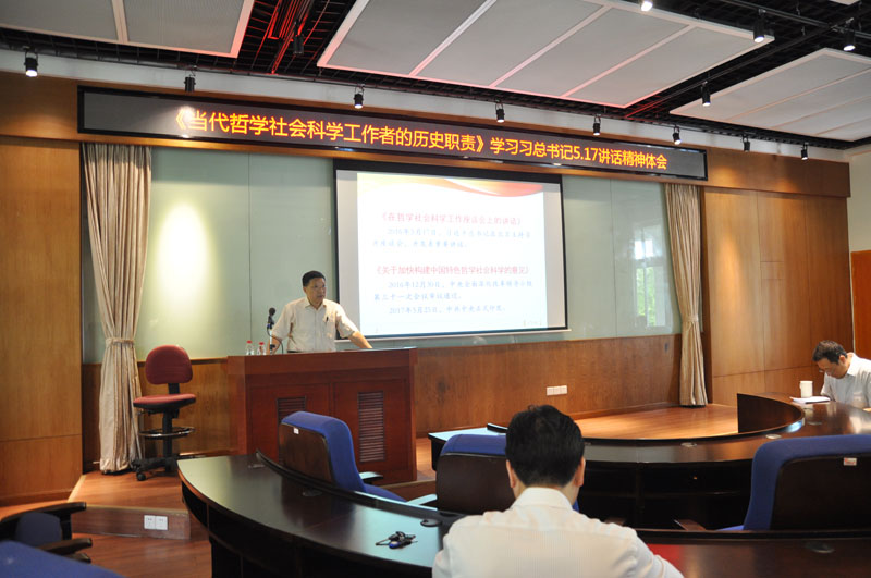7月21日上午,马克思主义学院苏劲教授为法学院全体教职工作了主题为“《当代哲学社会科学工作者的历史职责》——学习习近平总书记5.17讲话精神体会”的讲座。讲座由法学院副院长朱炎生主持。