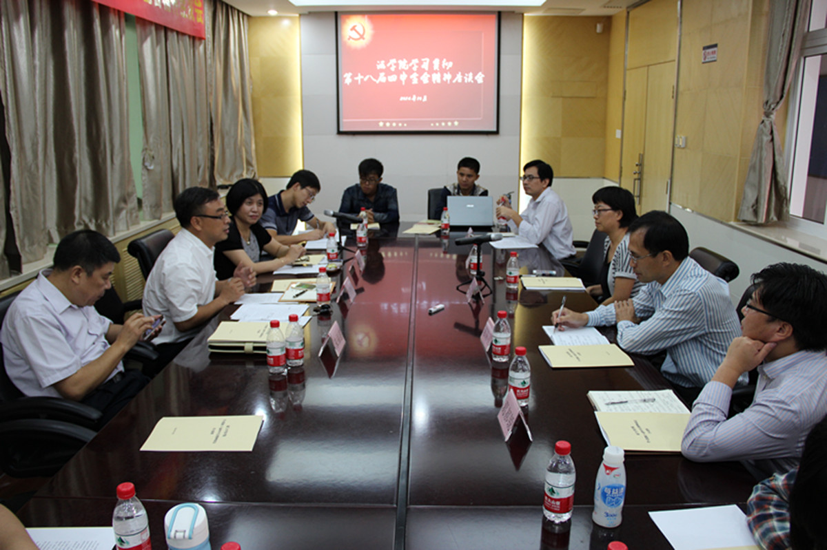在刚结束的十八届四中全会中,《十八届四中全会公报》和《中共中央关于全面推进依法治国重大问题的决定》公布,首次将“依法治国”作为主题。为深入学习贯彻全会精神,10月30日,我院召开学习贯彻十八届四中全会精神专题座谈会。校党委宣传部副部长曾铮,校团委副书记葛郝锐,学生处教育科科长陈泗林,我院党委书记李智勇,副书记周蕾、郭锦星,教师代表朱福惠、宋方青教授以及学生代表出席会议。与会师生代表一致认为法治、法学研究与法治教育迎来了发展的春天,大家从不同角度畅谈了对十八届四中全会精神的理解和学习体会,展望司法改革前景,为推进法治国家建设建言献策。