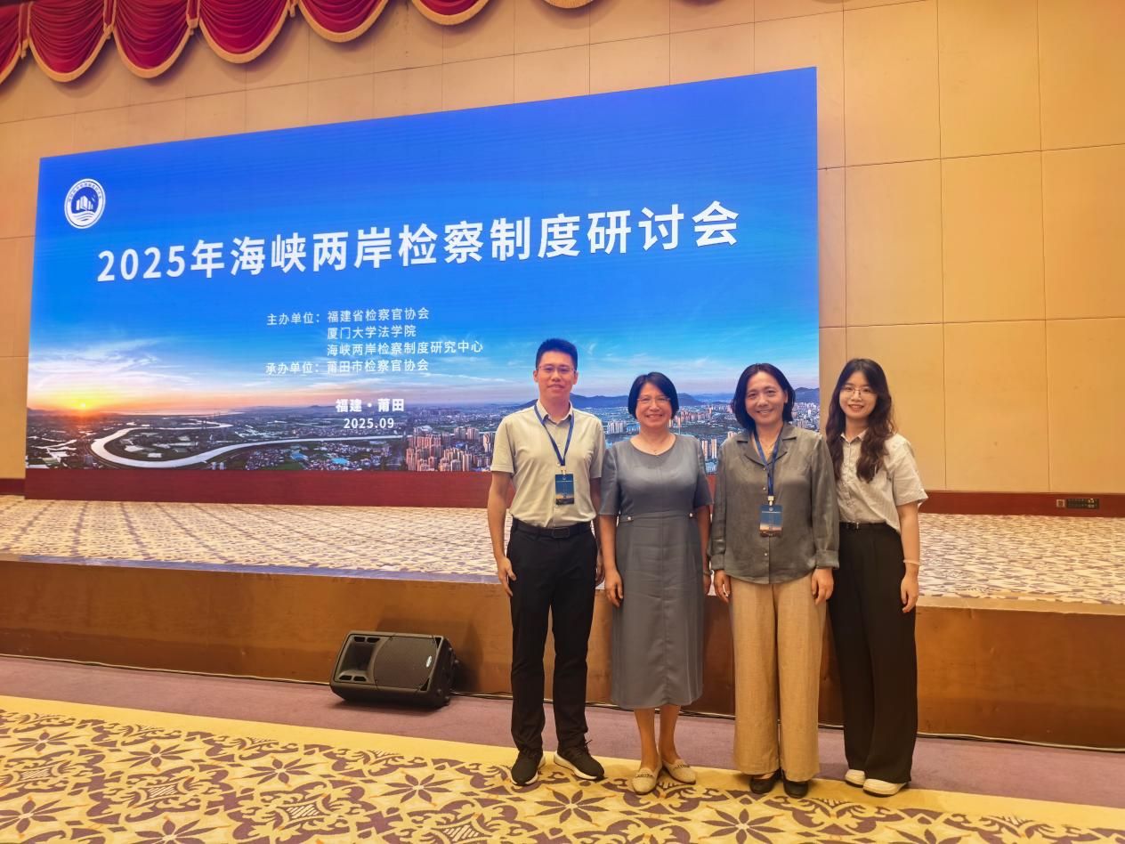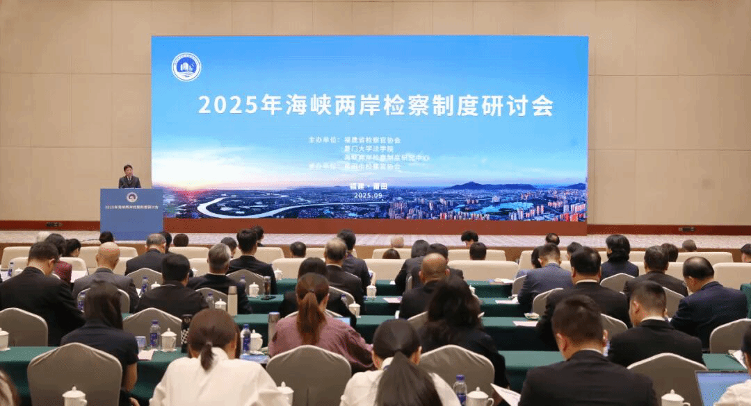 9月5日,2025年海峡两岸检察制度研讨会在福建莆田召开。本次研讨会由福建省检察官协会、厦门大学法学院、海峡两岸检察制度研究中心主办,莆田市检察官协会承办。福建省检察官协会会长侯建军主持开幕式,中国检察官协会副会长史卫忠、福建省法学会顾问石好勇、台湾海峡两岸法学交流协会理事长林辉煌、莆田市检察官协会特邀嘉宾付朝阳、厦门大学党委常务副书记林东伟出席会议并致辞。