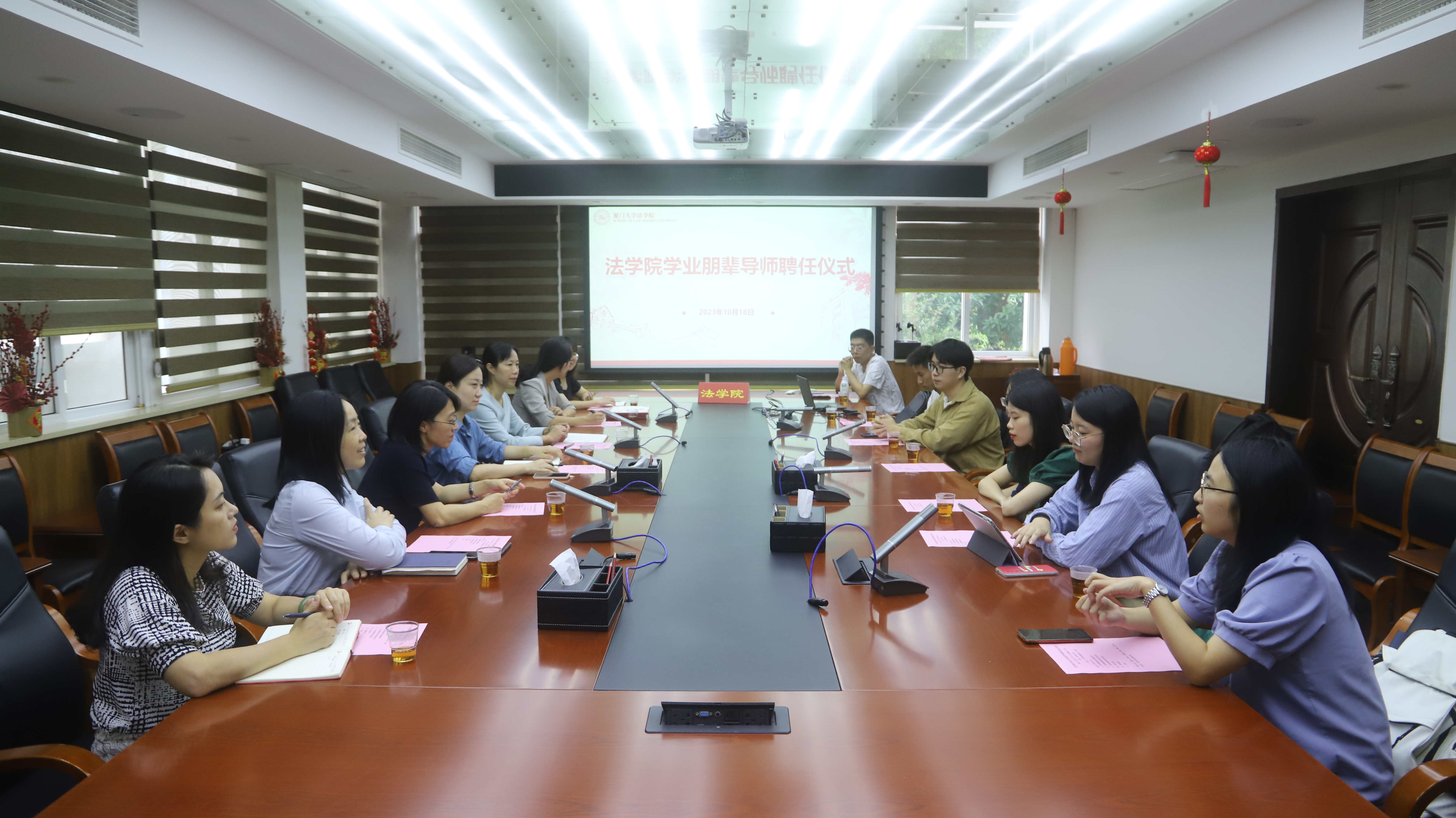 10月18日,法学院本科生学业朋辈导师聘任仪式在学院B220顺利举行。法学院副院长朱晓勤,刑法教研室主任吕英杰,团委书记刘茜,团委副书记吴维,教学秘书翁炎英、邓华丹,以及本科生学业朋辈导师参会。会议由学院党委副书记吴荻主持。