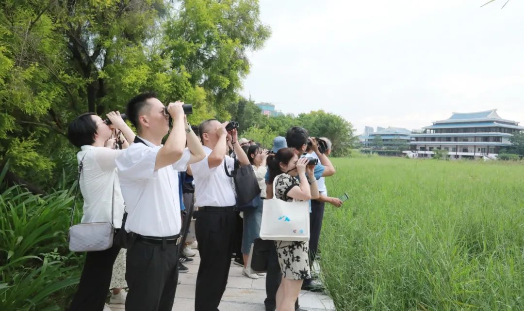 嘉宾们举起手中的望远镜瞭望,保护生物多样性的成效“眼见为实”。