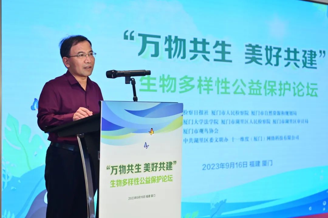 厦门市观鸟协会会长彭志伟分享了社会组织参与生态环境保护的探索,特别是与湖里区检察院、区审计局的联动。他呼吁充分发挥社会组织保护多样生物的功能。