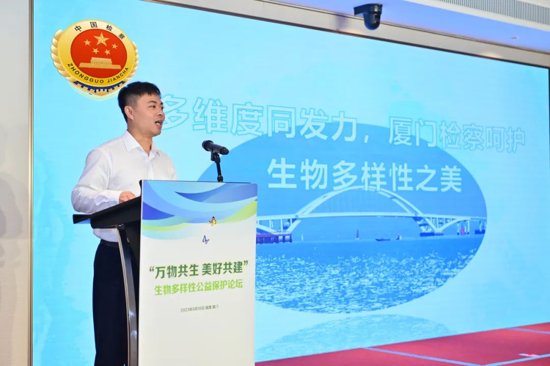 厦门市检察院第八检察部副主任徐进发以刑事打击、公益守护、府检联动、“外脑”助力四个主题词,介绍了厦门市检察机关多维度同发力保护生物多样性的做法与成效。