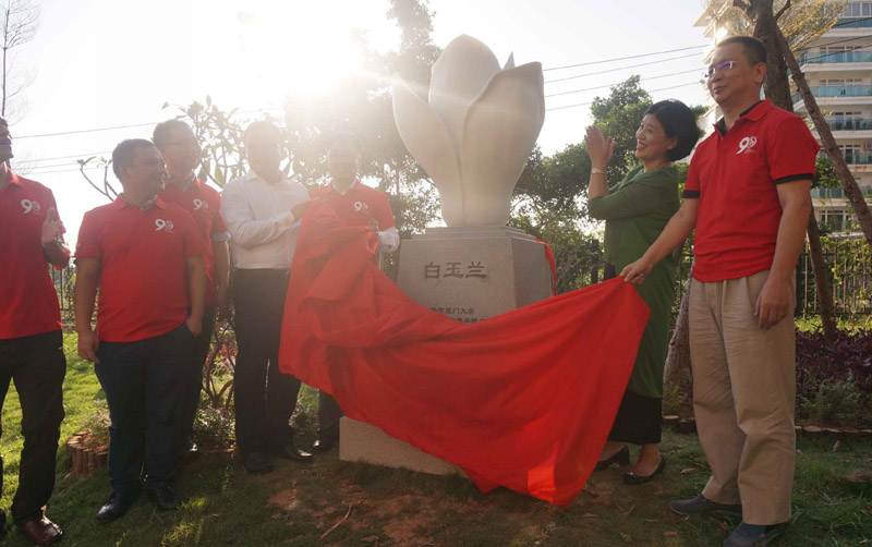 白玉兰为上海市市花,白玉兰雕塑也就自带着上海校友会的鲜明特色。用汉白玉雕刻而成的玉兰花,迎着明媚的余晖, 映着碧绿的草地,一如既往的洁白彰显着厦大法律人始终如一的坚守。