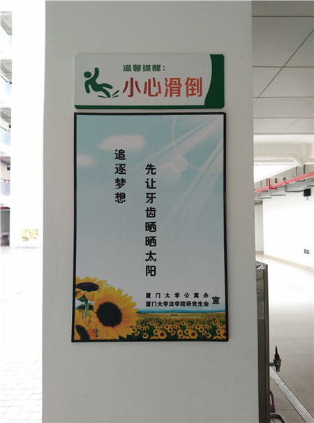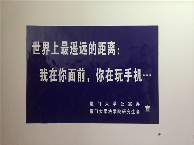 2015年11月18日中午,由厦门大学公寓办主办,厦门大学法学研究生会承办的以“不做低头族”和“保持微笑”为主题的宿舍文化“开放式”项目标语张贴工作圆满完成。