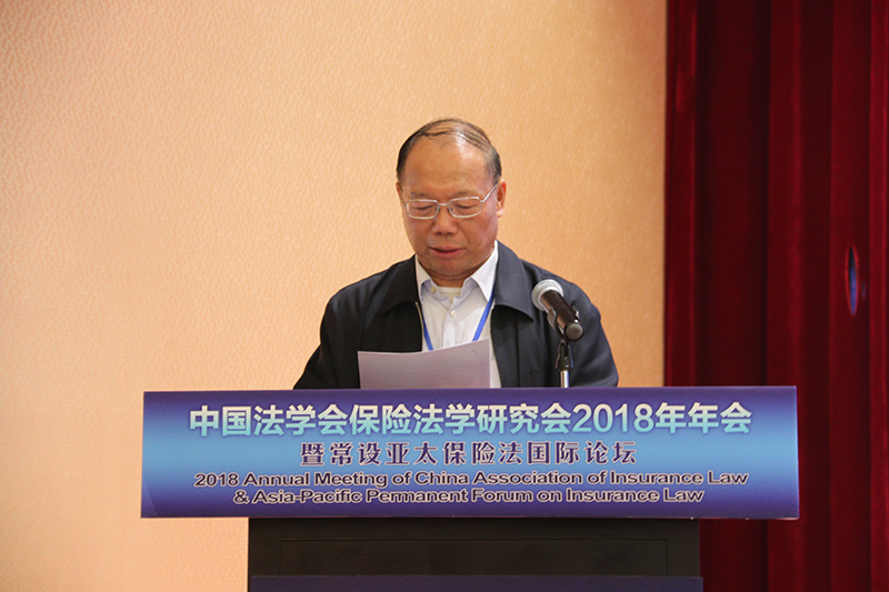 最后,中国法学会副会长任海泉中将代表中国法学会热烈祝贺大会的召开,并对本次会议的承办单位厦门大学法学院表示衷心的感谢!他指出,法治是保险的保险。离开了科学立法、严格执法、公正司法、深入普法,保险就会不保险。从这个意义上说,保险法学的发展壮大对于保险业成熟运作具有重大的理论意义。他首先充分肯定了保险法学研究会自2011年成立以来所作出的努力:一是重视自身队伍和作风建设。研究会积极参与中国法学会举办的各项活动,自觉与党中央的方针政策保持一致。严格制定理事会各项制度,在理事选任与退出机制、理事会表决制度以及理事会成员的作风建设方面提出了更高的要求。二是扎实推进各项活动开展。研究会始终紧扣立法、司法重大事件,积极参与最高人民法院保险法司法解释的论证工作,积极组织和参与各类学术活动,为中国保险法学的发展作出了应有贡献。三是学术研究成果较为突出。研究会不仅为保险法司法解释的出台贡献有力的智慧支持,还承担保险法第三次重大修订专家建议稿等重大课题,并加强与其他国家和地区保险法研究机构的交流,为扩展我国保险法学界的学术视野,展示我国保险法学理论与实践成果,发挥了积极作用。同时,他还对保险法学研究会今后的工作提出了四点意见:一、以习近平总书记全面依法治国新理念新思想新战略为指引,始终坚持保险法学研究正确的政治方向。研究会应引领广大会员认真学习贯彻习近平总书记关于全面依法治国的新理念新思想新战略,主动聚焦保险法学领域重大理论和实践问题。保险法学工作者应研究符合满足人民群众不断增长的对美好生活向往的保险制度,加强对保险法律制度的体系化研究。二、树立鲜明的问题意识,紧密围绕保险领域的新情况新问题展开研究,积极回应经济社会发展的现实需要。保险行业的创新发展对保险监管提出了新要求,保险金融法律制度设置需要新思路,专家学者们应不断深入研究,集思广益,拿出先进、管用的成果。三、服务国家战略,积极推进保险服务企业走出去的风险管理。随着“一带一路”建设深入发展,保险法研究应为有效防范涉外法律风险提供更多的理论支持,为中国企业和中国投资“走出去”提供充分、有效的法律服务。同时,应借鉴其他国家和地区先进的保险法律制度,推进保险法研究的国际交流。四、不断加强队伍建设,着力培养青年优秀人才。研究会要特别关注保险法学青年研究人才的成长,努力创造条件,使优秀人才脱颖而出,为保险法学研究的可持续发展作好人才储备。