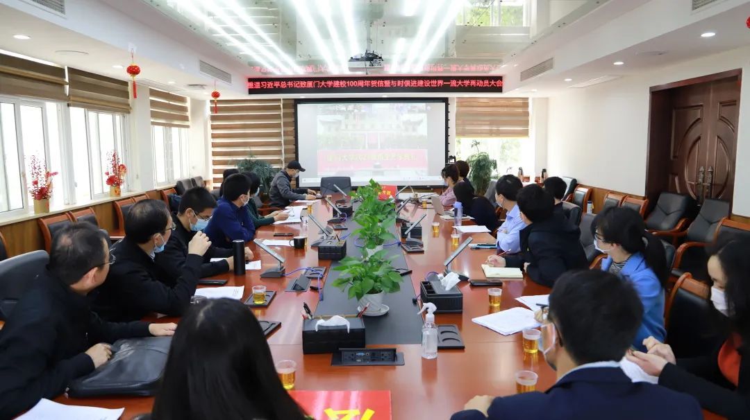 殷殷深情,谆谆嘱托。与会人员首先观看学习贯彻习近平总书记致厦门大学建校100周年重要贺信精神纪实视频。在贺信中,习近平总书记肯定了厦门大学光荣传统、办学成效、优良校风和鲜明特色,并对我校新百年发展寄予新希望、提出新要求,为我校奋进新征程指明了前进方向、注入了强大动力、提供了根本遵循。全校师生不会忘记,厦门大学的改革、建设与发展,始终得到习近平总书记的关心关怀,并将时刻牢记习近平总书记的殷殷嘱托,全面对标习近平总书记提出的新要求新期望,努力开创一流大学建设新局面。