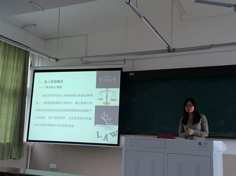 2014年4月29日上午,以“游走在法律边缘的中国私人侦探”为主题的学术沙龙在法学院A301教室顺利展开。参与该学术沙龙的人员包括诉讼法学博士研究生、诉讼法学硕士研究生以及其他各专业中选修《证据法研究》课程的同学们,法学院的张榕老师也应邀对此次沙龙进行指导。