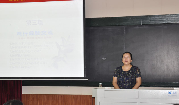 赖英群老师在做经验交流