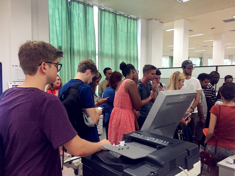 随后,董晓晴老师与外籍新生一起熟悉校园,并在图书馆现场指导选课等。