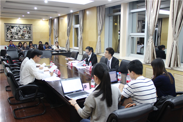 初赛在我校4只参赛队伍间展开,共进行两场。分别于11月3日、4日晚7:00在法学院419教室进行。参赛各队分原被告,就某一环境公益诉讼案例进行法庭辩论。法学社工作人员提前布置了会场,做好了相应的赛前准备,确保了比赛有条不紊的开展。