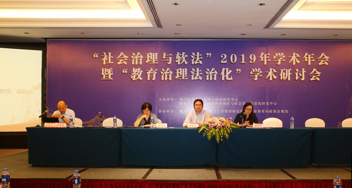 2019年6月15日,由厦门大学社会治理与软法研究中心、福建省高校特色新型智库国家与社会治理法治化研究中心主办,厦门大学法学院、厦门大学教育研究院、厦门市教育局政策法规处协办的“社会治理与软法”2019年学术年会暨“教育治理法治化”学术研讨会在厦门市海悦山庄酒店海葵厅会议室顺利举行,来自北京、广东、浙江、福建等多地区专家学者100余人参加本次会议。