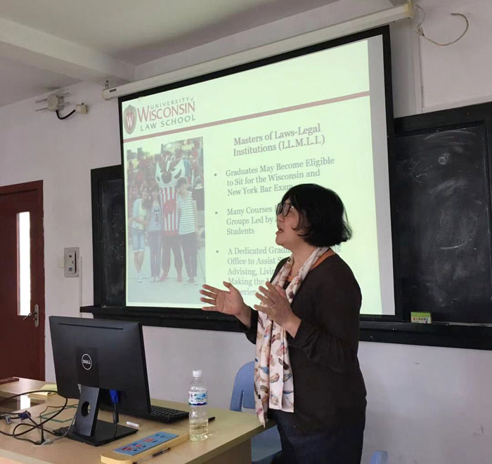 12月17日,美国威斯康星大学法学院研究生招生项目经理胡文捷女士到访我院,就两院签订的原有协议进行进一步洽谈,并向法学院学生宣讲。